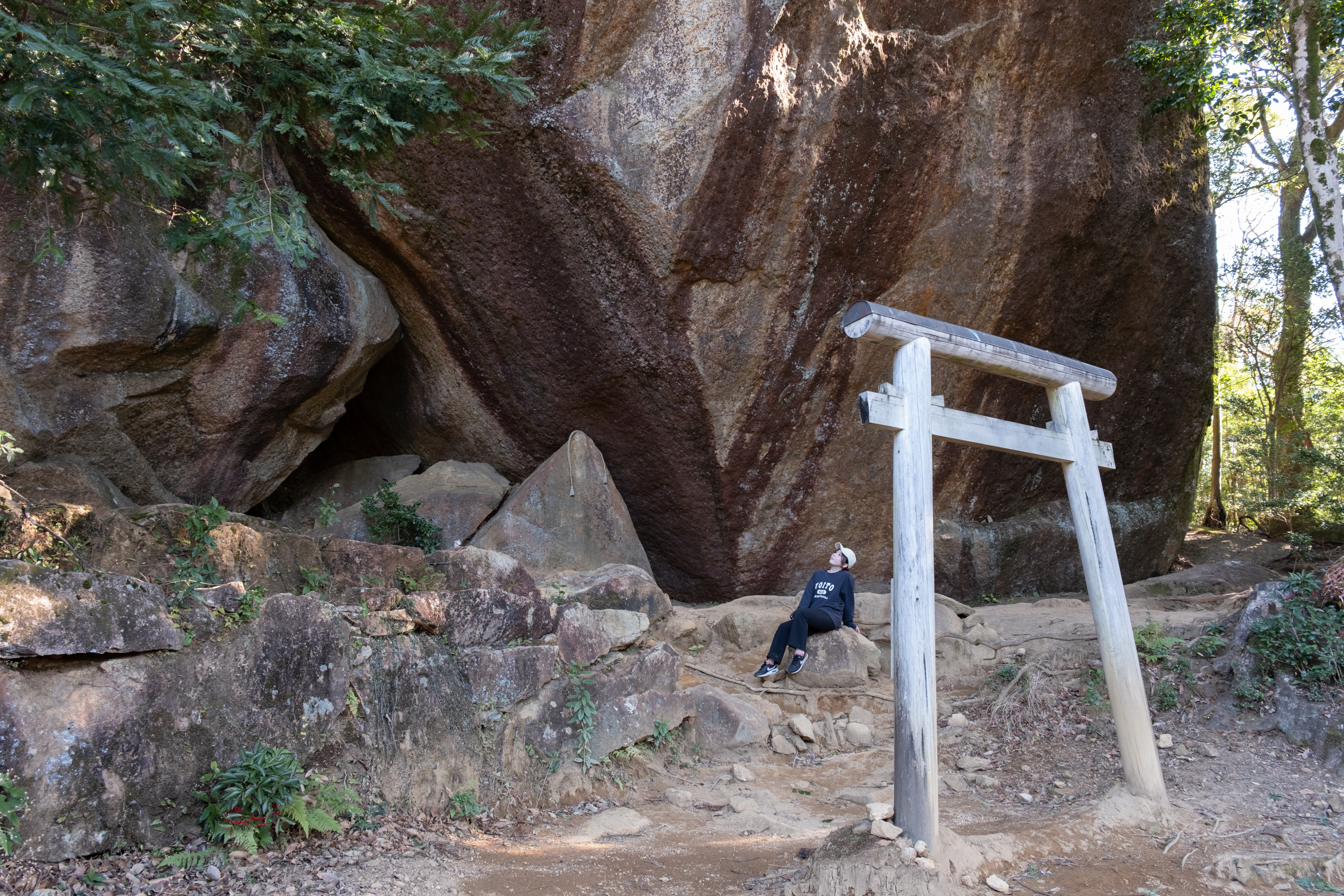 神さん山は、森の静けさに包まれながら歩ける癒しの山。気軽に自然を感じられますが、途中にはやや長い階段もあるため、ゆっくりとしたペースでの散策がおすすめです。岩が支え合う神秘的な岩屋も見どころで、心身ともにリフレッシュできます。