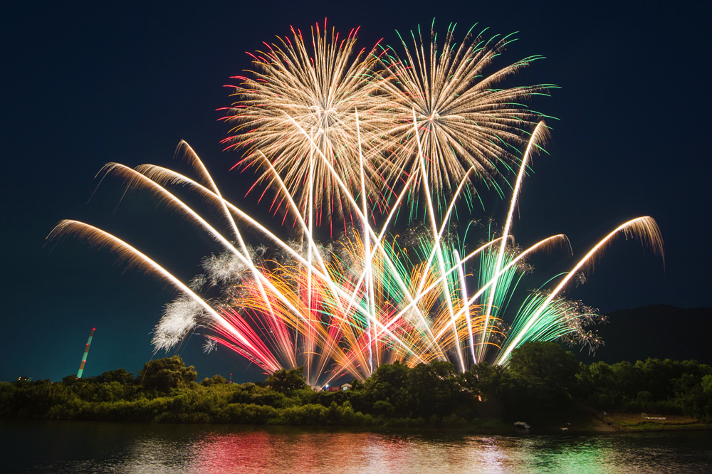そして翌日には、夜空を華麗に彩る花火大会が開催されます。打ち上げ場所から観覧席が近いため、迫力と臨場感を肌で感じることができます。
