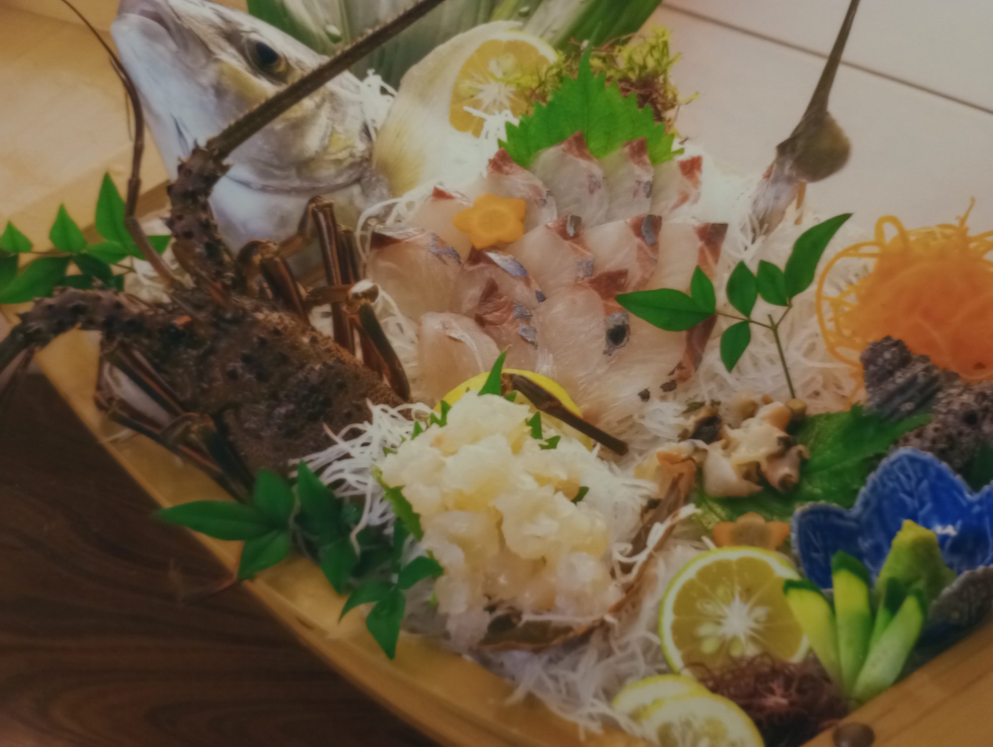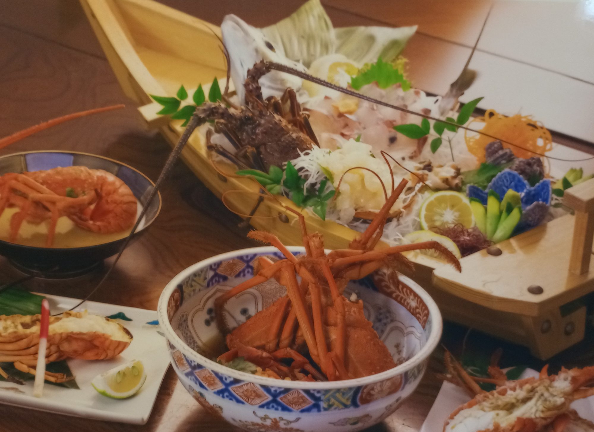 調理人自ら目利きして入札し、買い付けた日向灘どれの魚介類と、地元の新鮮な野菜を使って作りだすこだわりの料理の数々は、地元はもとより県外からも多くの食通が訪れる延岡の名店。すっぽん鍋(上写真)のほか宮崎牛しゃぶしゃぶ鍋、猪鍋(いずれも要予約)があり、特にすっぽん鍋は若い女性に人気です。「旬の魚をより新鮮に味わってもらうために」と設置した大小10個ものいけすは圧巻で、それを横目に楽しめるカウンターの他、小部屋、大部屋といろいろなシーンに対応できます。徹底したいけすの管理で、シーズン以外でも大人気の伊勢海老料理を楽しむことができるのも多賀田ならでは。