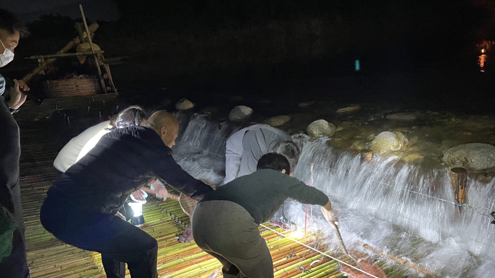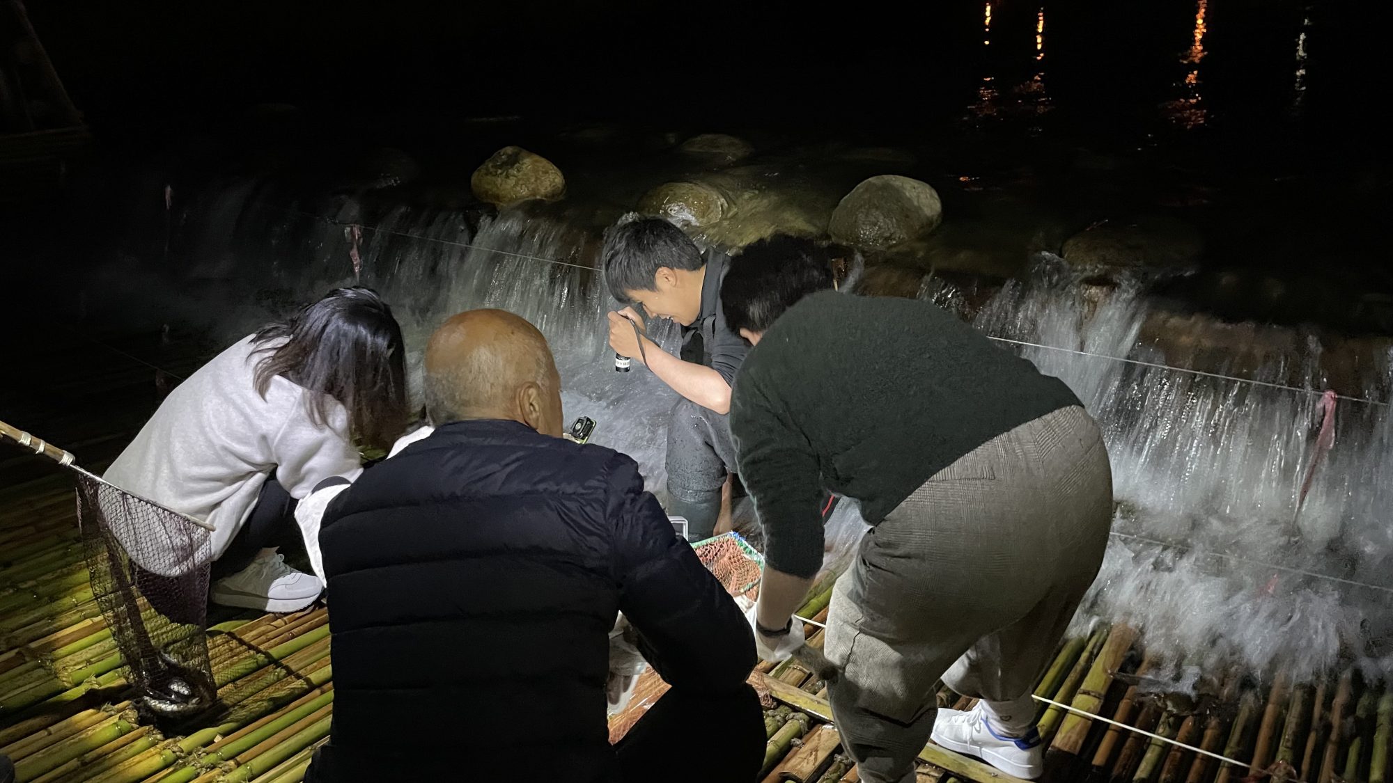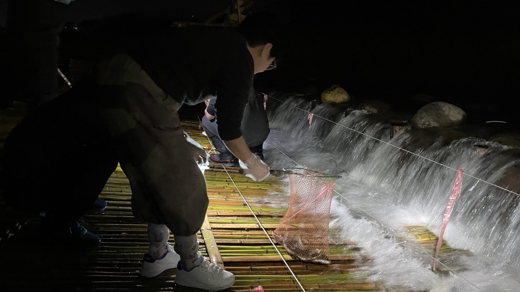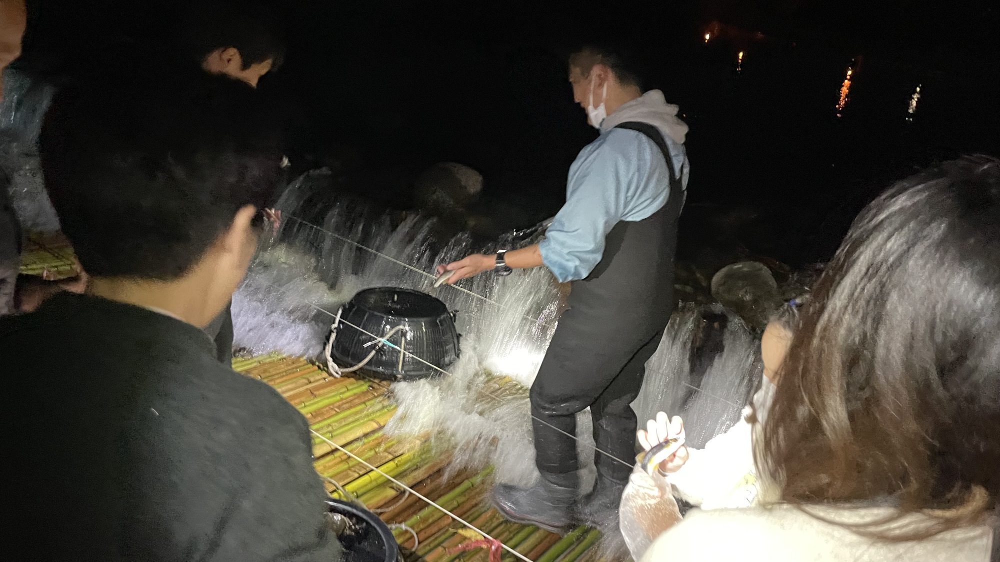 TOP>>【秋季えんぱく開催報告】夜の鮎やな 落テ簀(おてす)見学 【秋季えんぱく開催報告】夜の鮎やな 落テ簀(おてす)見学 11月7日(金)、14日(金)、21日(金)の三日間、「秋季えんぱく」の一環として、 夜の鮎やな 落テ簀(おてす)見学 を実施しました。 当日は、普段は立ち入ることができない落テ簀へ特別に入り、 参加者の皆さまに 鮎の捕獲体験してもらいました。 「貴重な体験だった」「また参加したい」といった嬉しいお声も多く寄せられています。 今回のイベントを通じて、延岡の鮎文化をより身近に感じていただく機会となりました。 ご参加いただきました皆さまに心より感謝申し上げます。 関連情報焼肉丸丸のぼりざる(宮崎県伝統工芸品)(株)カシヤマ