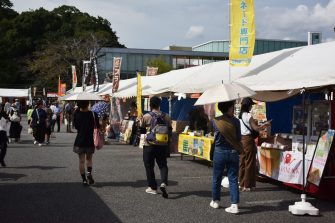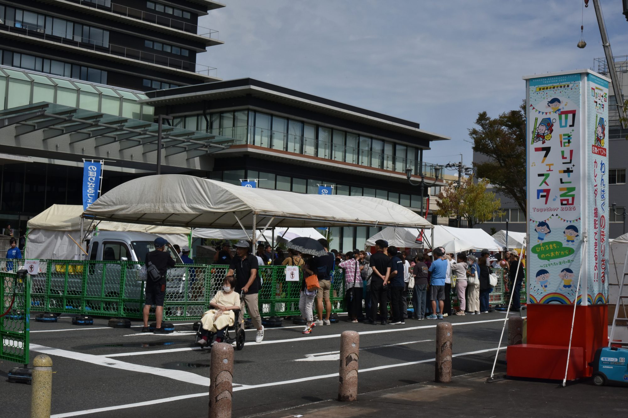 2025年10月18日(土)・19日(日)、「のぼりざるフェスタTogether2025」が延岡市役所前中町通り、延岡市役所第1駐車場、本小路街区公園で開催されます。初日の今日は快晴にめぐまれ、汗ばむ1日となりました。開催と同時にたくさんのグルメや物産品の販売やワークショップが始まり、多くの人で賑わいをみせていました。特に、子どもに大人気の「わんぱくのぼりざる」コーナー、「鮎のつかみ取りコーナー」は多くの子ども達の笑顔と笑い声に包まれました。明日(19日)も10時から16時まで開催されます。延岡市内外の美味しいグルメや物産品、ワークショップや体験コーナーなど、面白い企画満載なので、ぜひ会場にお越しください!