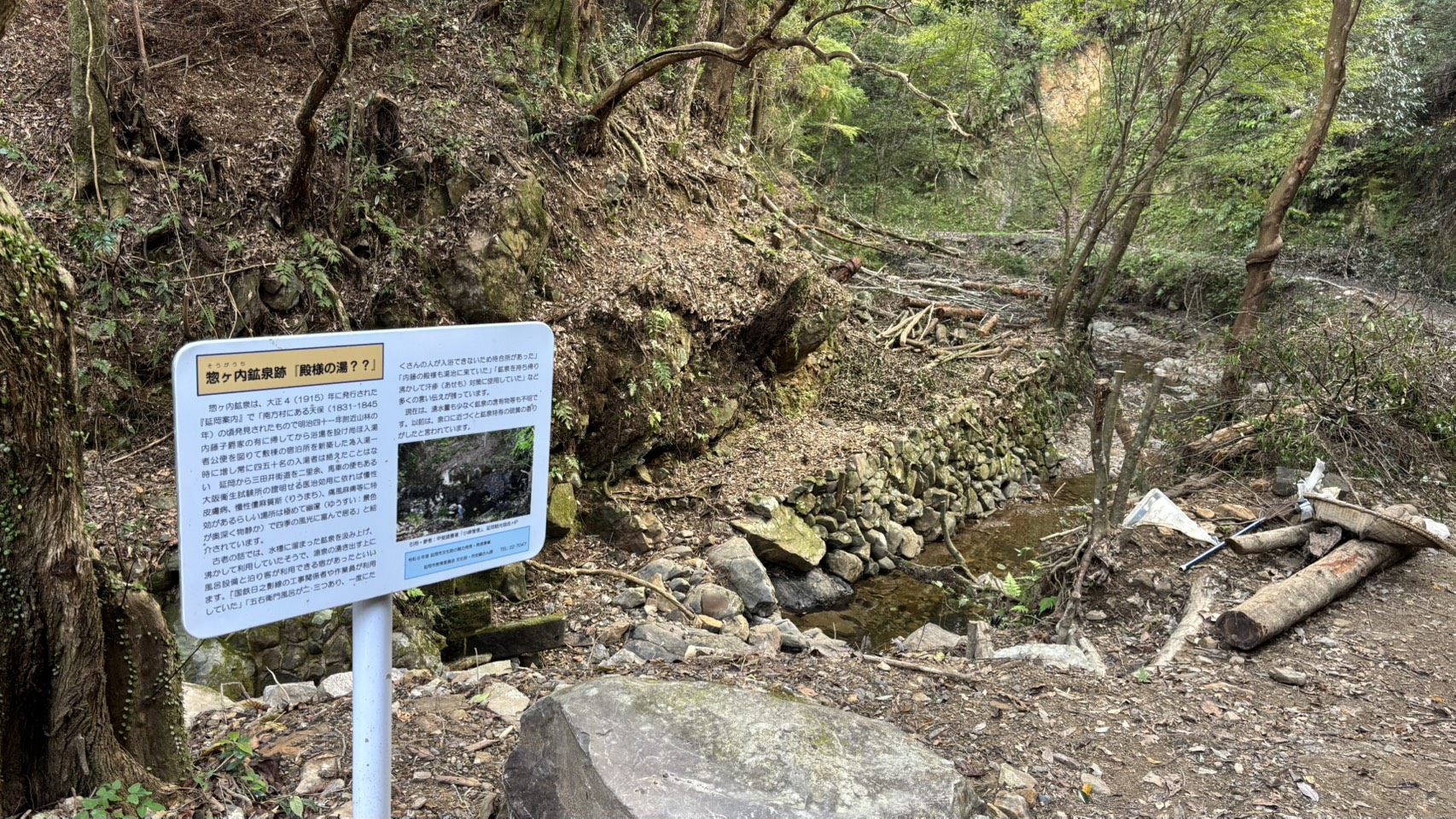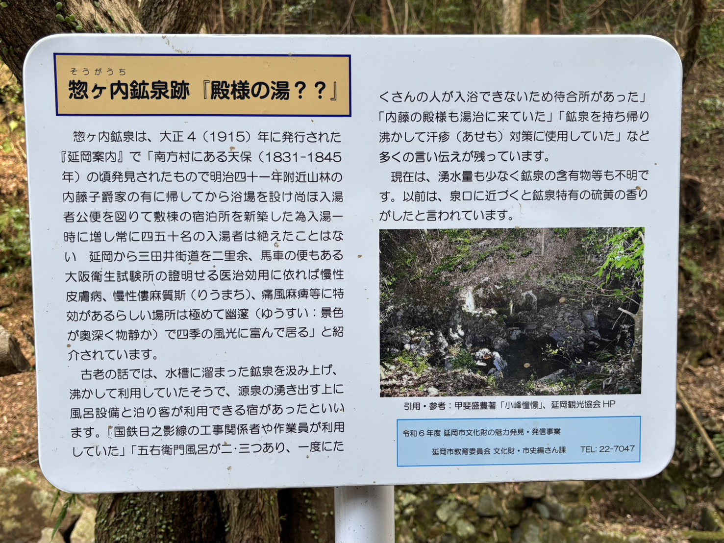 TOP>>惣ヶ内鉱泉の周辺整備が進んでいます。 惣ヶ内鉱泉の周辺整備が進んでいます。 平田町惣ヶ内には、江戸時代に発見された鉱泉があり、昭和初期頃まで湯宿もあって多くの湯治客が訪れていました。 その昔、内藤家藩主も湯治に訪れたとも言われていますが、現在は湧水量も少なく、周辺も荒れ果てた状態となっていました。 この惣ヶ内鉱泉の存在を市民の皆さんに知ってもらいたいと、平田町の佐藤 勝造さん((株)サンルーム会長)が道路の舗装をはじめ、樹木の伐採、駐車場造成などの周辺環境整備を進めています。 現地は森林に囲まれ綺麗な小川が流れるなど、癒しの空間を醸し出しています。 関連情報東九州伊勢えび海道20周年感謝祭の開催について延岡茶有限会社 三森特殊印刷社