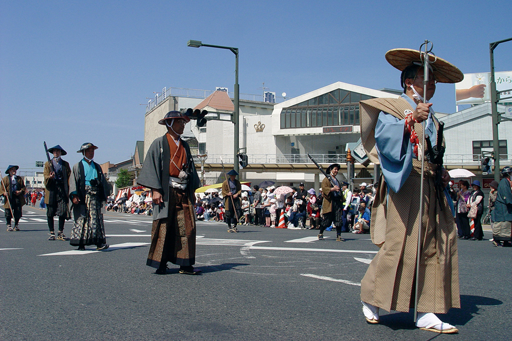 延岡の市街地を見下ろす今山の山頂。ここに鎮座するのが、高さ17メートル・日本一のスケールを誇る「弘法大師像」です。1839年、疫病に苦しむ人々を救うために高野山から霊像を勧請したのが始まりとされ、以来、家内安全や息災延命のパワースポットとして、その穏やかな表情で街と人々の暮らしを見守り続けています。この大師像の足元へと続くのが、134段の石段。実はこれも、最高級御影石の一本造りとしては「日本一」と称される名所。そして毎年4月中旬、一年で最も熱い祝祭の舞台へと変わります。「九州三大春祭り」の一つに数えられる「延岡大師祭」です。期間中は、県内外からも多くの参加者が訪れ、街中が歓喜に包まれます。3日間にわたる祭りの間、境内では厳粛な法要や護摩祈願が行われる一方、参道や商店街では「おせったい」の文化でお菓子や飲み物が振る舞われ、ユーモアあふれる「見立細工」の展示や賑やかな物産市が彩りを添えます。祭りのフィナーレを飾るのは、最終日の「市中パレード」。伝統的な大名行列や、総勢約1,000名によるダンスパフォーマンスがストリートを埋め尽くす光景は圧巻です。