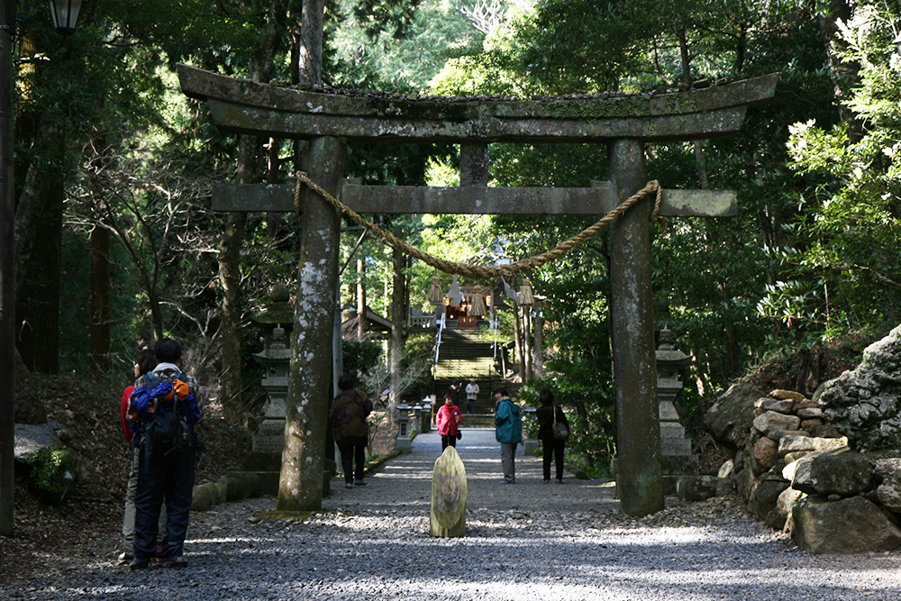 社殿の前に鎮座した奇妙な顔形の狛犬や、樹齢300年の夫婦杉、軒下に施された見事な彫刻や象鼻など、象徴的なシンボルが多く存在する神社です。中でも「鉄鰐口」は県の有形文化財に指定されている貴重なものです。