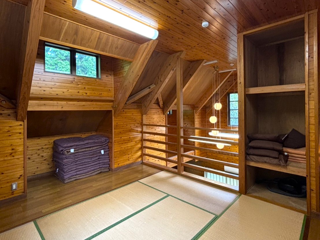 また、施設内には貸別荘(全7棟)もあり、2階建てタイプが3棟(うち1棟はバリアフリー対応)、平屋建てタイプが4棟あります。各棟にはお風呂やキッチン、寝具セット(6名分)が備えられており、自然の中でゆったりと宿泊することができます。