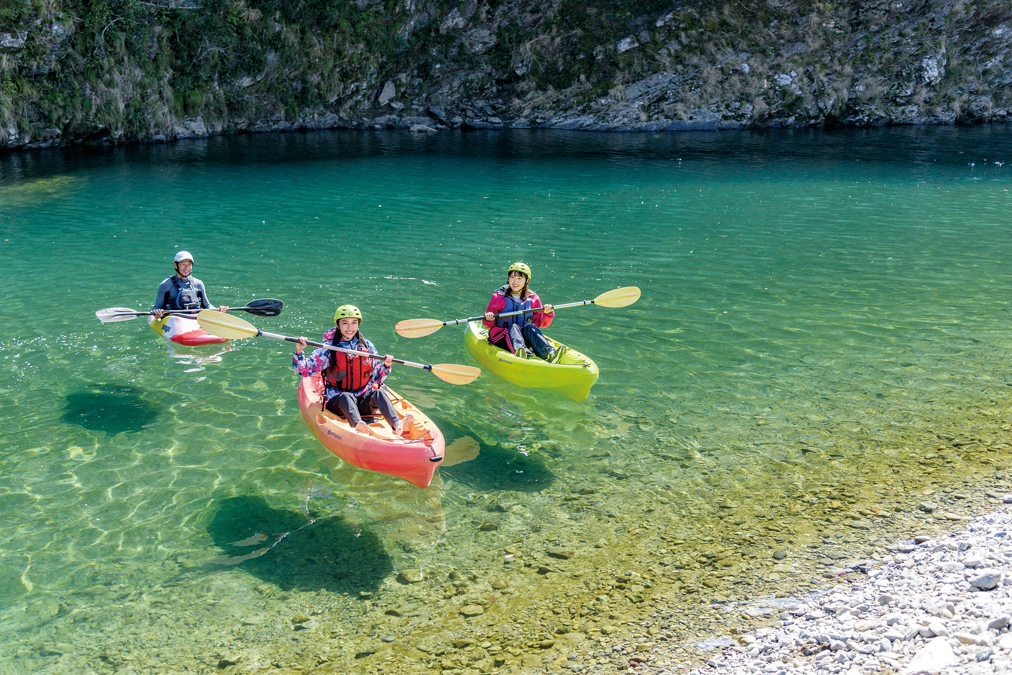 “奇跡の清流”で体験する、宙に浮く川遊び体験