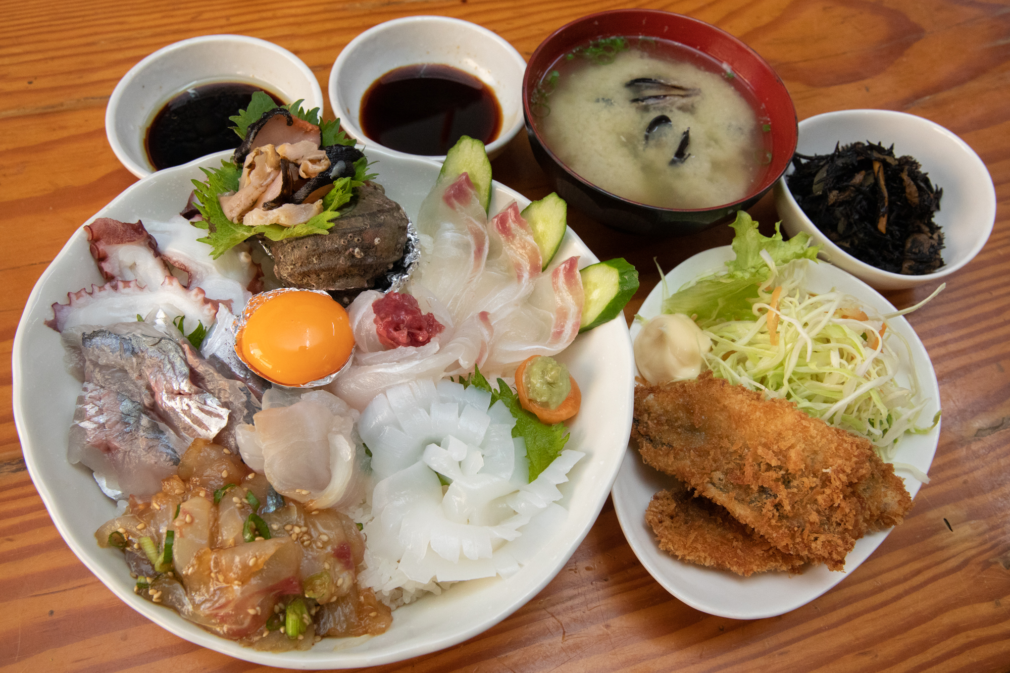 須美江海水浴場の目の前!「この場所だからこそ堪能できるもの」を基本コンセプトに、地魚・須美江湾で採れる天然のヒジキ・地獲れの岩牡蠣など、選び抜いた質の高い海の幸を主役に料理を手がける民宿。
