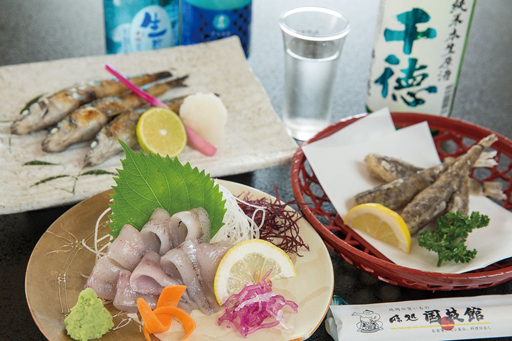 創業から63年、延岡随一の老舗「味処 国技館」は、店内に入ると威勢のいい太鼓の音でお出迎え。地元で獲れる四季折々の山海の幸を活かした自慢の料理でおもてなしいたします。日向灘どれの新鮮な魚、ひむか本サバを使った焼きサバ寿司をはじめ、メヒカリの唐揚げや刺身、サバ茶漬け。季節ごとに岩ガキや伊勢海老、鮎など、この地を訪れたら一度は味わいたいものばかりです。