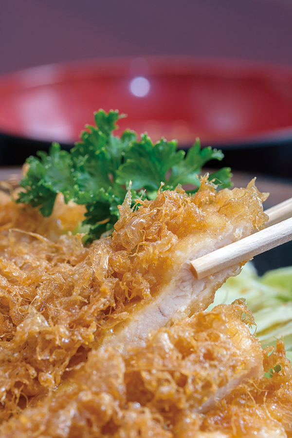 「直ちゃん」のチキン南蛮は、県産鶏のムネ肉に小麦粉をつけ、溶き卵にくぐらせて揚げ、オリジナルの甘酢ダレをかけただけのシンプルさが特徴。おいしい米として知られる行縢米を、圧力釜で炊いた炊きたてのご飯と、北浦産イリコと行縢産乾しシイタケでダシを取った味噌汁で食欲倍増!!ザク切りしたキャベツと甘酢ダレの 相性も抜群です。