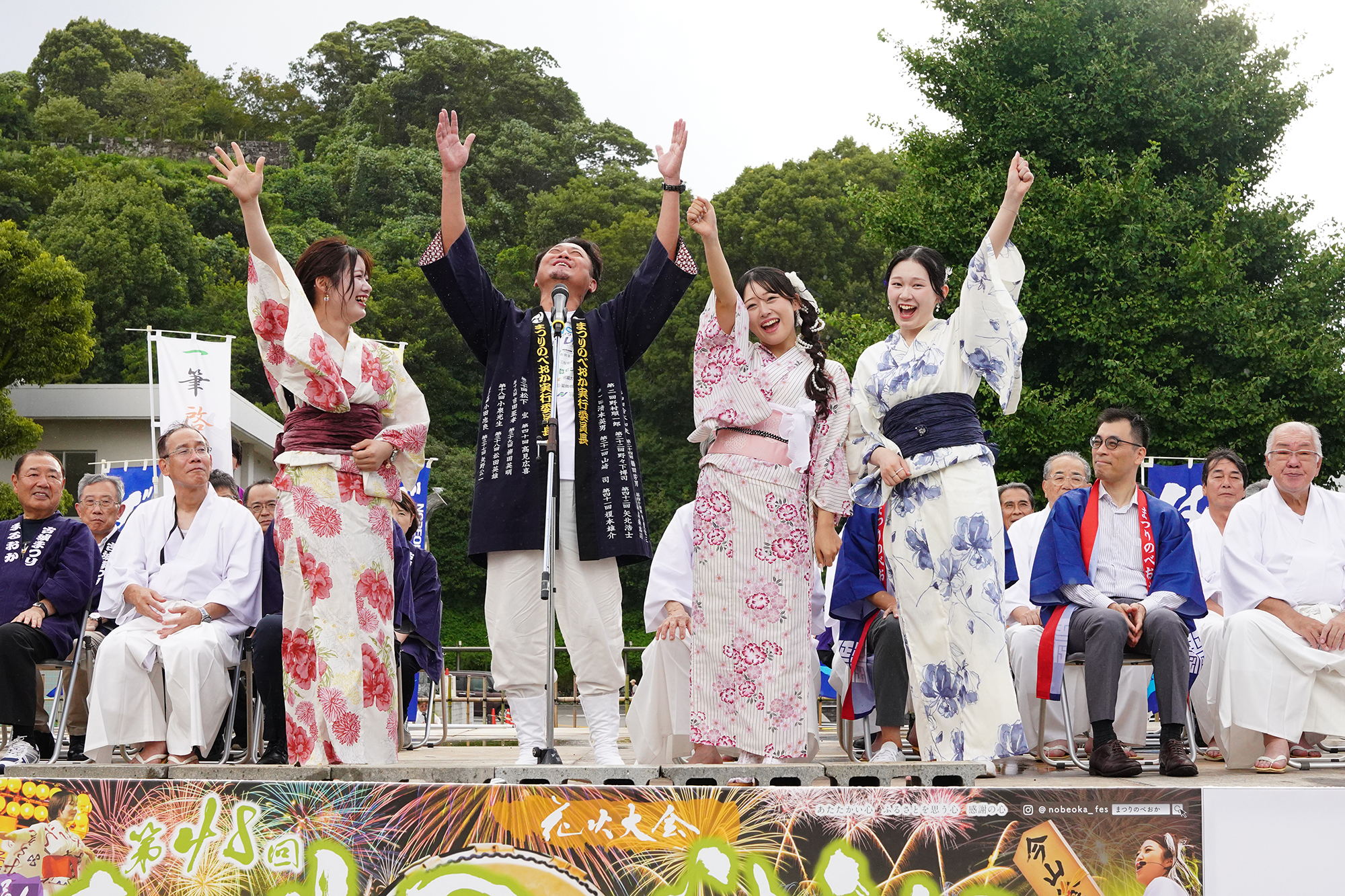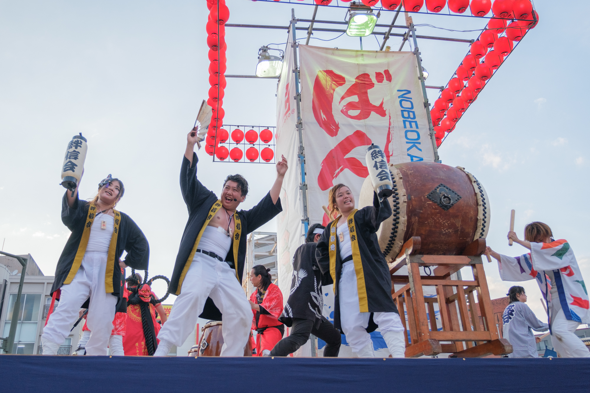 まつりの企画・運営は、全てまつりのべおか推進協議会をはじめとする市民ボランティアによって構成された実行委員会によって行なわれ、当日には延べ1,000人を超える市民ボランティアが設営・ 進行・撤去を行ないます。担ぎ手が勇壮さを競い合う「出会い神輿」に始まり、太鼓競演会、3,000人を超える市民が参加する「ばんば総踊り」でクライマックスをむかえます。