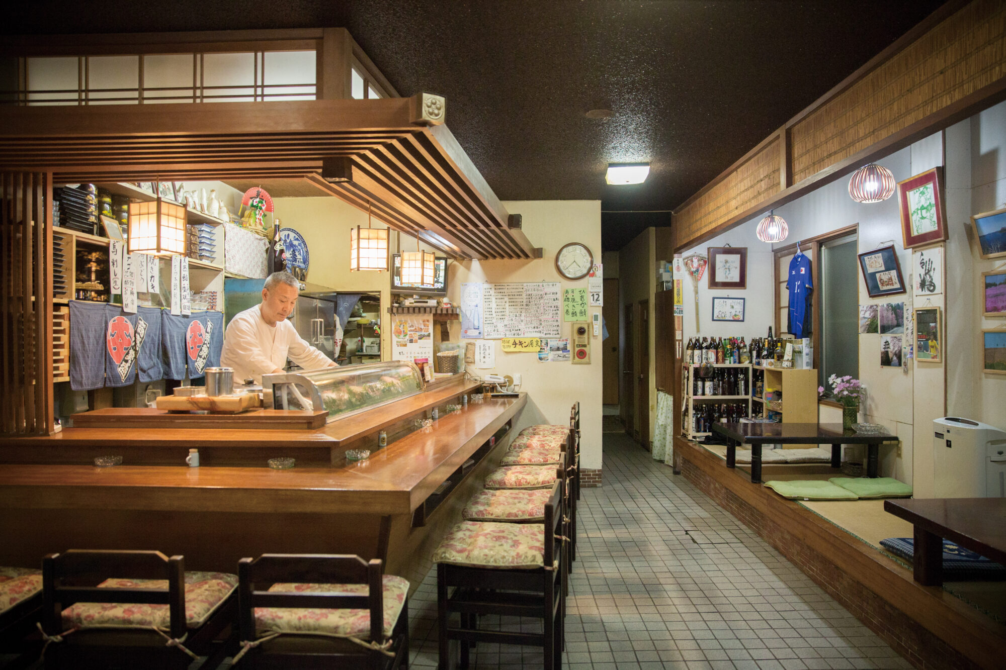 昭和51年に創業し、現在は2代目がカウンターに立ち切り盛りしています。ショーケースには、新鮮さと地元産にこだわったネタがずらりと並び、手際よく大将がにぎる寿司は訪れた人の舌を虜にします。「魚が苦手な人でも安心して来てほしい」との想いから寿司以外に準備された天ぷらや焼き物、煮込み、肉料理などの一品料理にも妥協がありません。