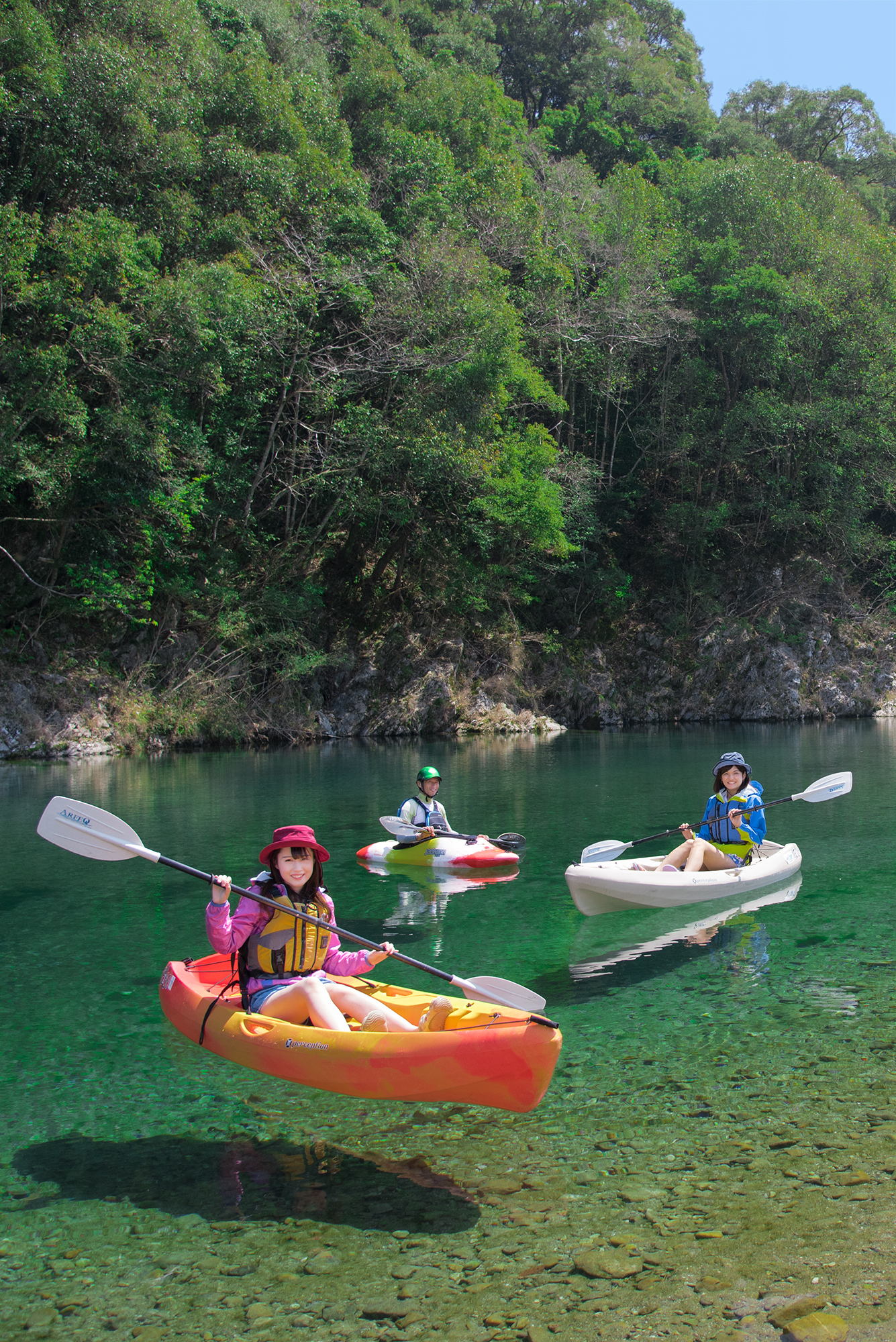 “奇跡の清流”で体験する、宙に浮く川遊び体験